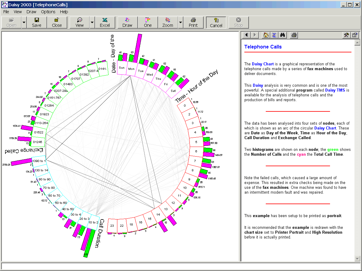- Daisy can also draw many other charts, such as date and time, circular histograms, pie, Go-matrix etc. etc. More...
