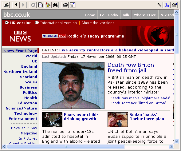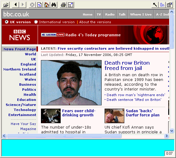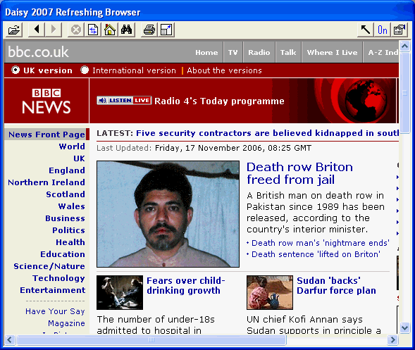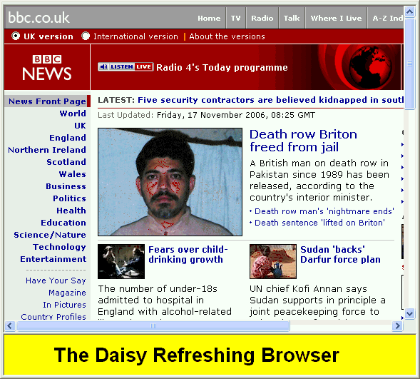 Shown are a series of six screen shots as the various features of the 'NC' version of the Refreshing Browser are changed. Click all the images to see a larger version.